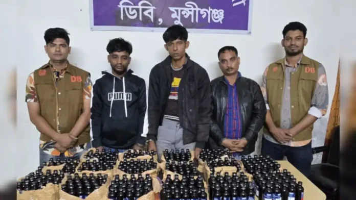 মুন্সিগঞ্জে পদ্মা সেতু (উত্তর) থানার পাশেই লৌহজং উপজেলার খানবাড়ী সিএনজি স্ট্যান্ড এলাকায় অভিযান চালিয়ে ৪০০ বোতল ফেন্সিডিলসহ তিনজনকে গ্রেপ্তার করেছে জেলা গোয়েন্দা ডিবি পুলিশের চৌকস বাহিনী টিম।