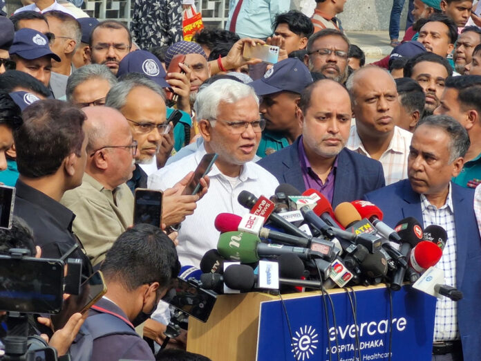 আজ মঙ্গলবার বেলা ১২টার পর বসুন্ধরা এলাকায় এভারকেয়ার হসপিটালের সামনে এক প্রেস ব্রিফিংয়ে তিনি এসব তথ্য জানান।