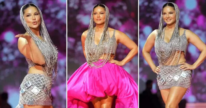 ভারতীয় গণমাধ্যম সূত্রে জানা যায়, ক্রিস্টালখচিত সিলভার পোশাকের সঙ্গে গোলাপি রঙের মিনি ওভার স্কার্ট পরে র‍্যাম্পে প্রবেশ সানি লিওনের। মঞ্চে এগিয়ে আসতে আসতে তিনি সরিয়ে ফেললেন ওভারস্কার্টটি। পুরাপুরি ক্রিস্টাল দিয়ে বানানো রুপালি পোশাকে ধরা দিলেন লাস্যময়ী এই অভিনেত্রী। আর সেখানেই টুইস্ট। স্কার্টে ঝুলছে সারি সারি কনডমের প্যাকেট। সানির এমন পোশাকে রীতিমতো চমকে যাওয়ার জোগাড় দর্শকদের। কিন্তু কেন কনডমকে পোশাকের সঙ্গী বানালেন তিনি? নেহাতই পাবলিসিটি? নাকি অন্য কারণ?