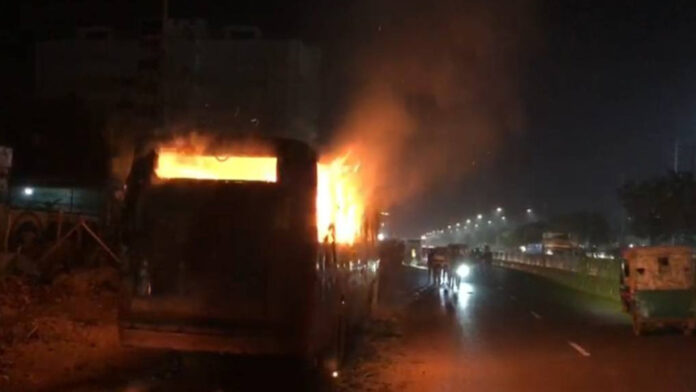 সাভারের দাঁড় করিয়ে রাখা একটি বাসে আগুন দিয়েছেদুর্বৃত্তরা।